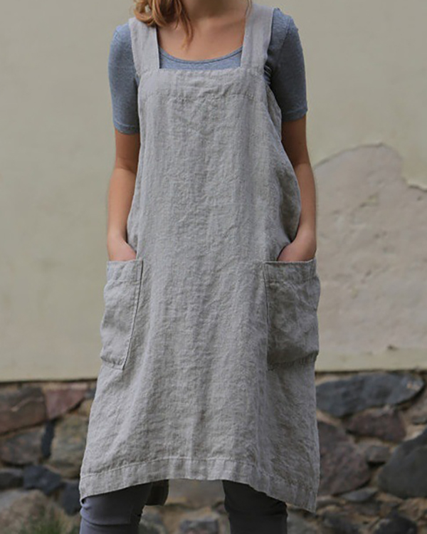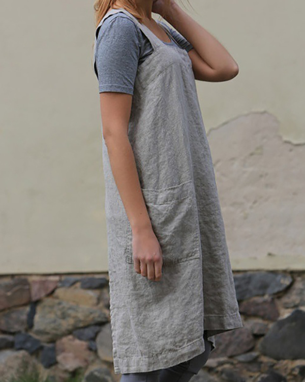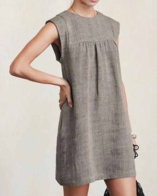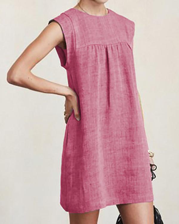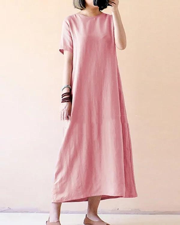 Casual Pure Color O Neck Linen Cotton Cocoon Dress
