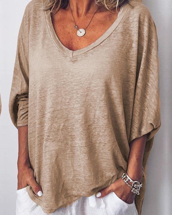Casual Solid V Neck Long Batwing Sleeve Blouses Tops