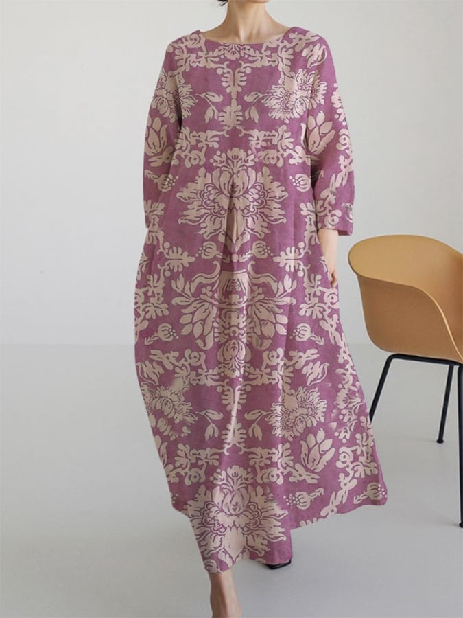 Ladies Retro Pattern Design Casual Loose Dress