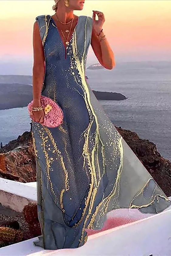 Casual Print Patchwork V Neck Trumpet Mermaid Dresses