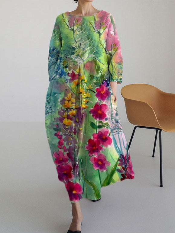 Ladies Botanical Floral Design Casual Loose Dress