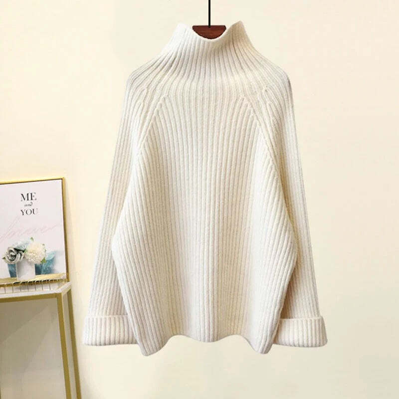 Fashion Khaki Turtle Neck Patchwork Knit Pullover Winter