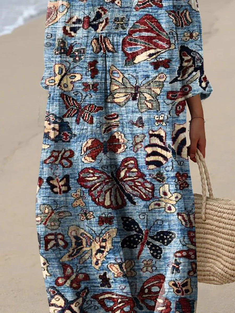 Women's Vintage Lovely Butterflies Art Print Flowy Dress