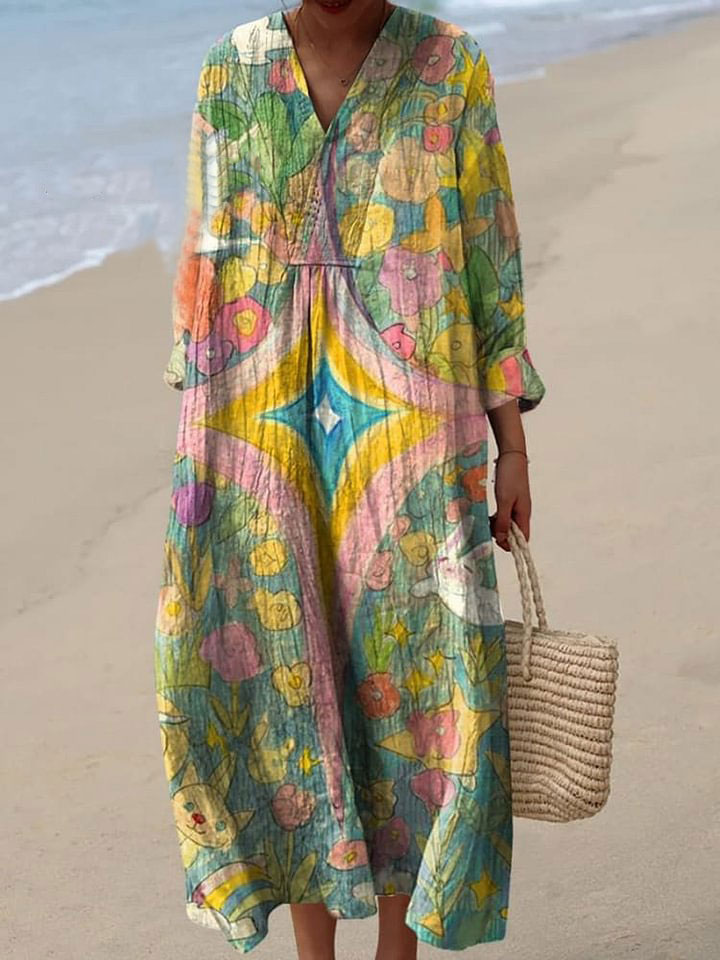 Women's Retro Pretty Colorful Sfumato Art Print Flowy Dress