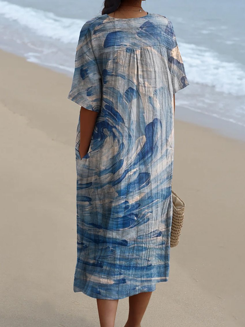 Retro Mural Style Water Drop Pattern Decorative Pattern Flowy Dress