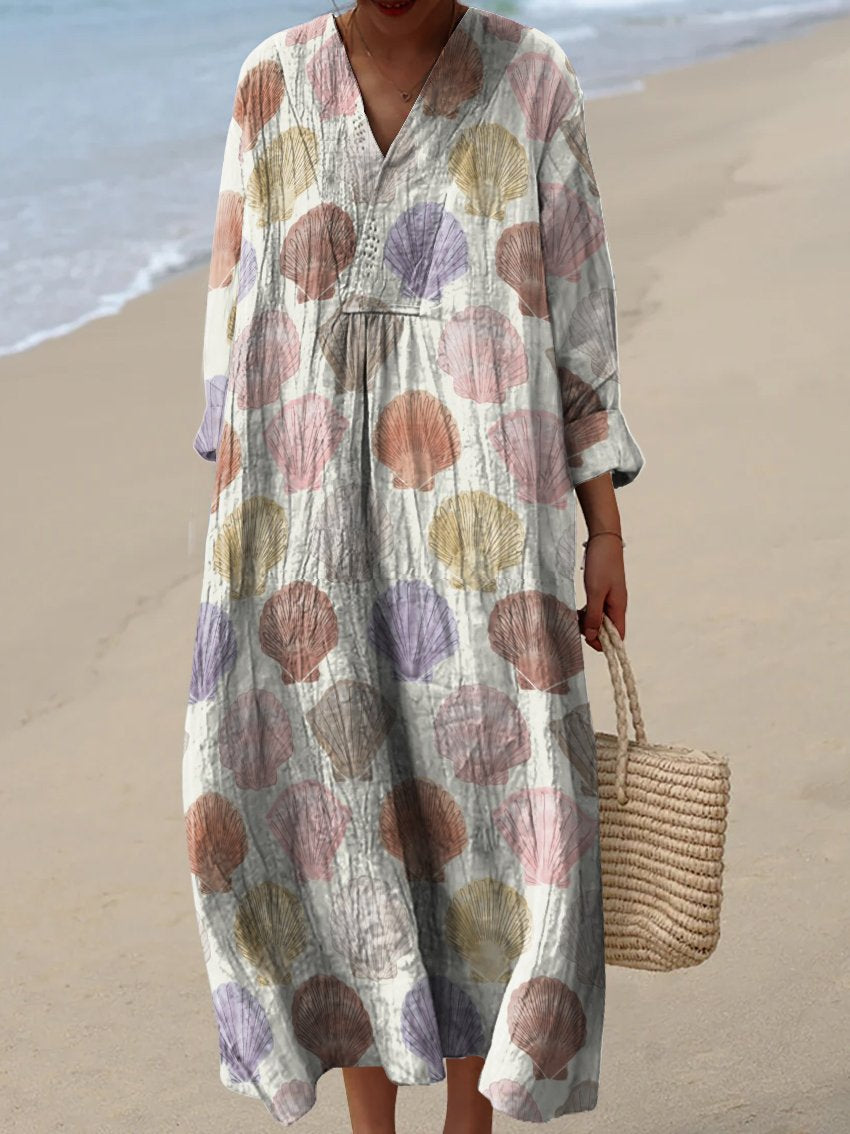 Multicolor Shell Decorative Pattern Flowy Dress
