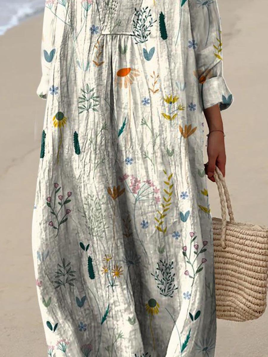 Women's Vintage Lovely Floral Art Print Flowy Dress