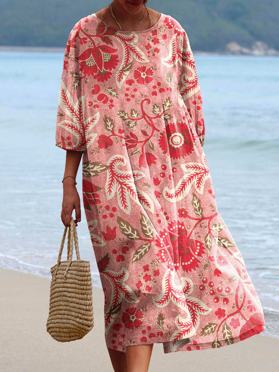 Women's Vintage Floral Print Flowy Dress