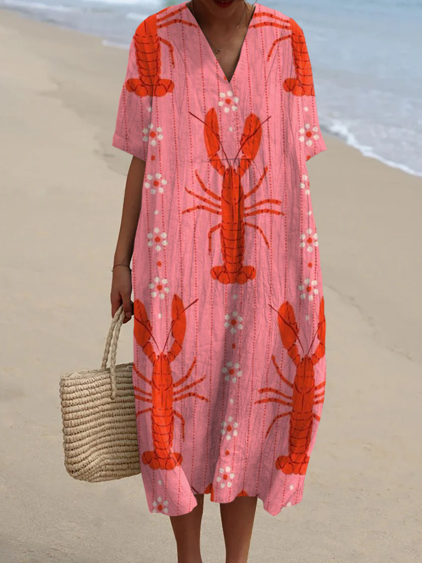 Women's Vintage Lobster Floral Print Flowy Dress