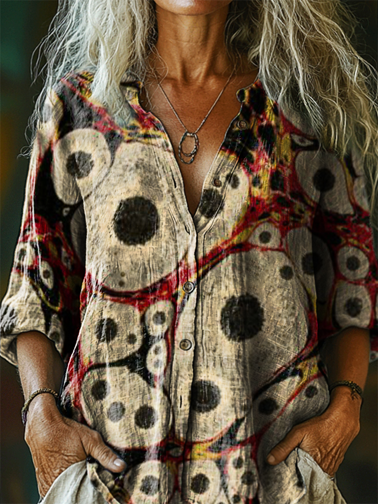 Women's Hippie Art Print Casual Cotton Linen Shirt