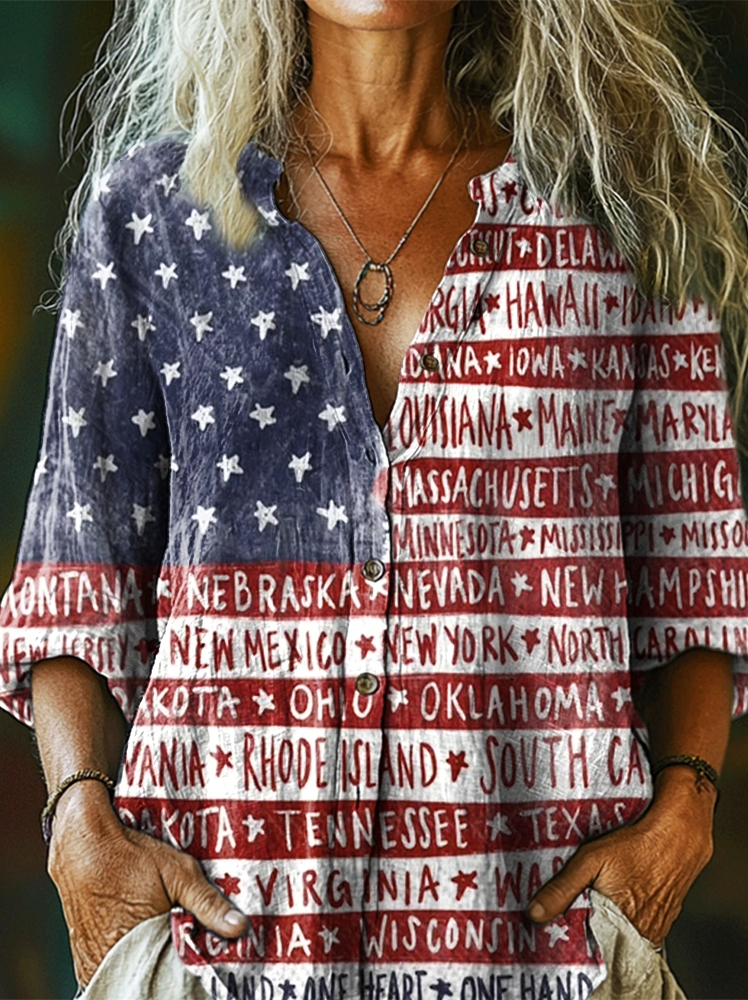 Women's Independence Day Flag Art Print Casual Cotton Shirt