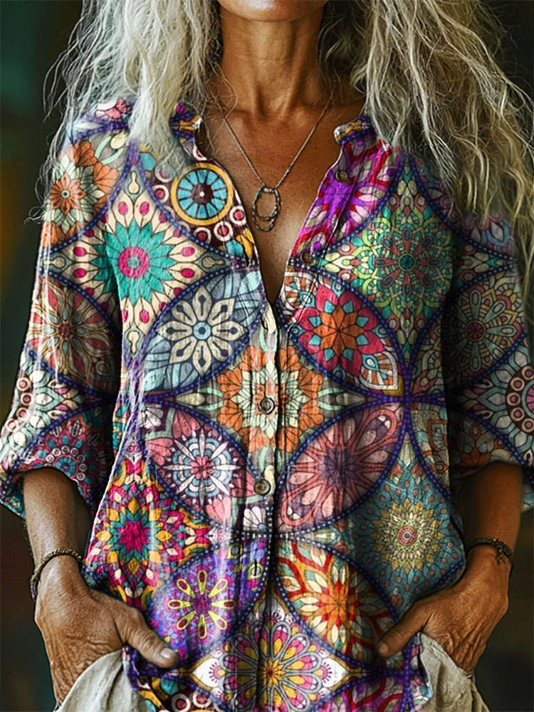 Women's Bohemian Patterns Art Print Casual Cotton Linen Shirt