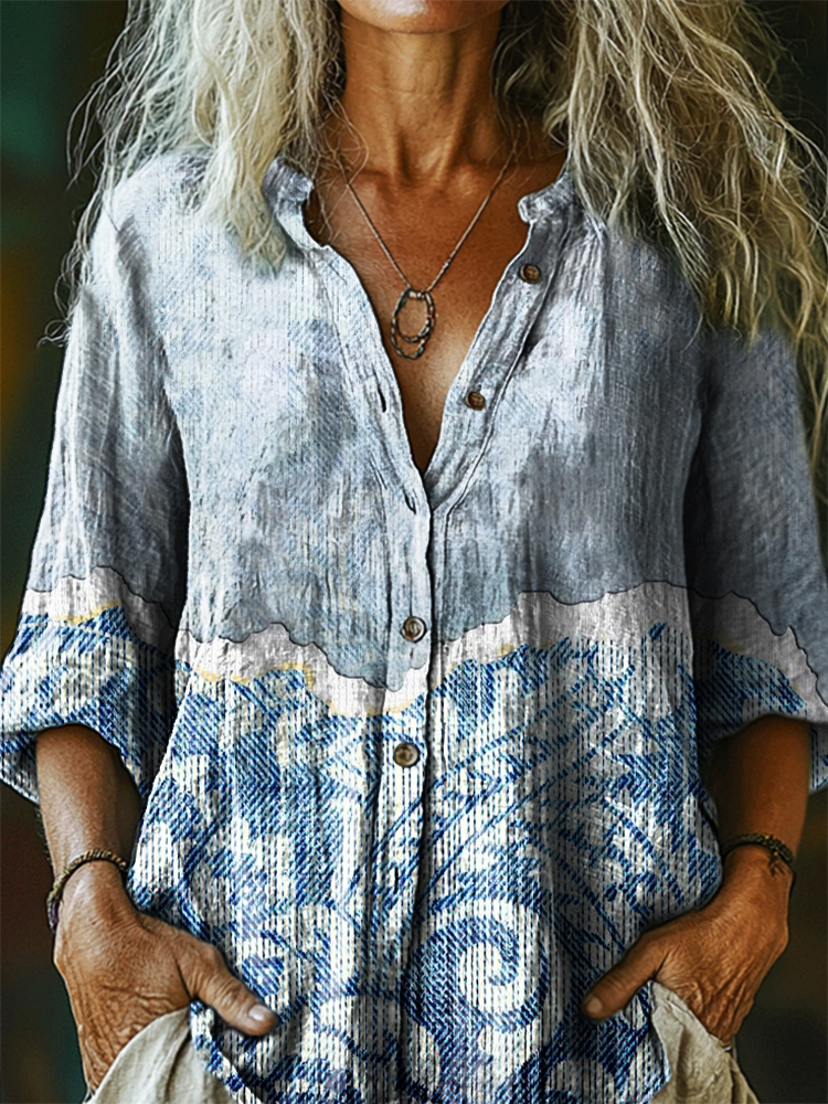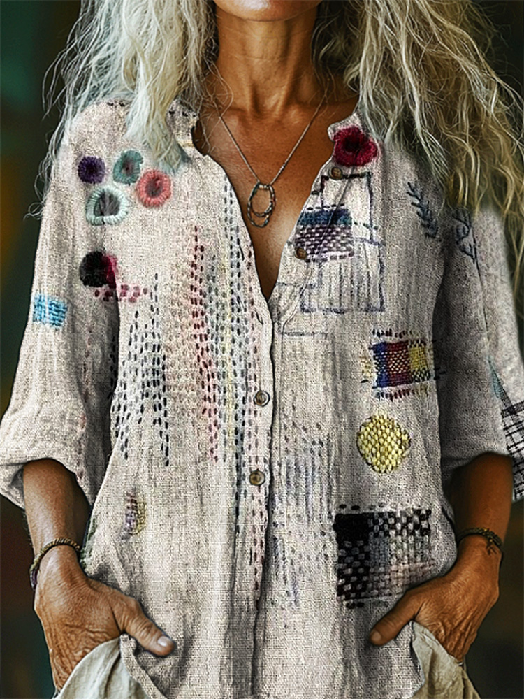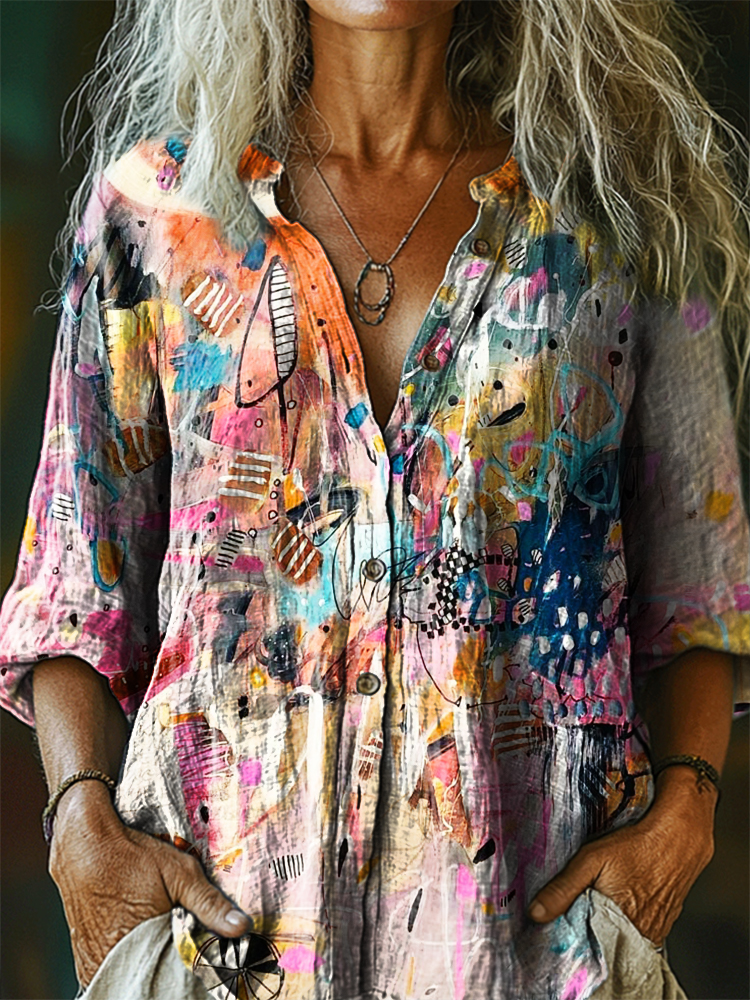 Women's Colorful Pattern Art Print Casual Cotton Linen Shirt