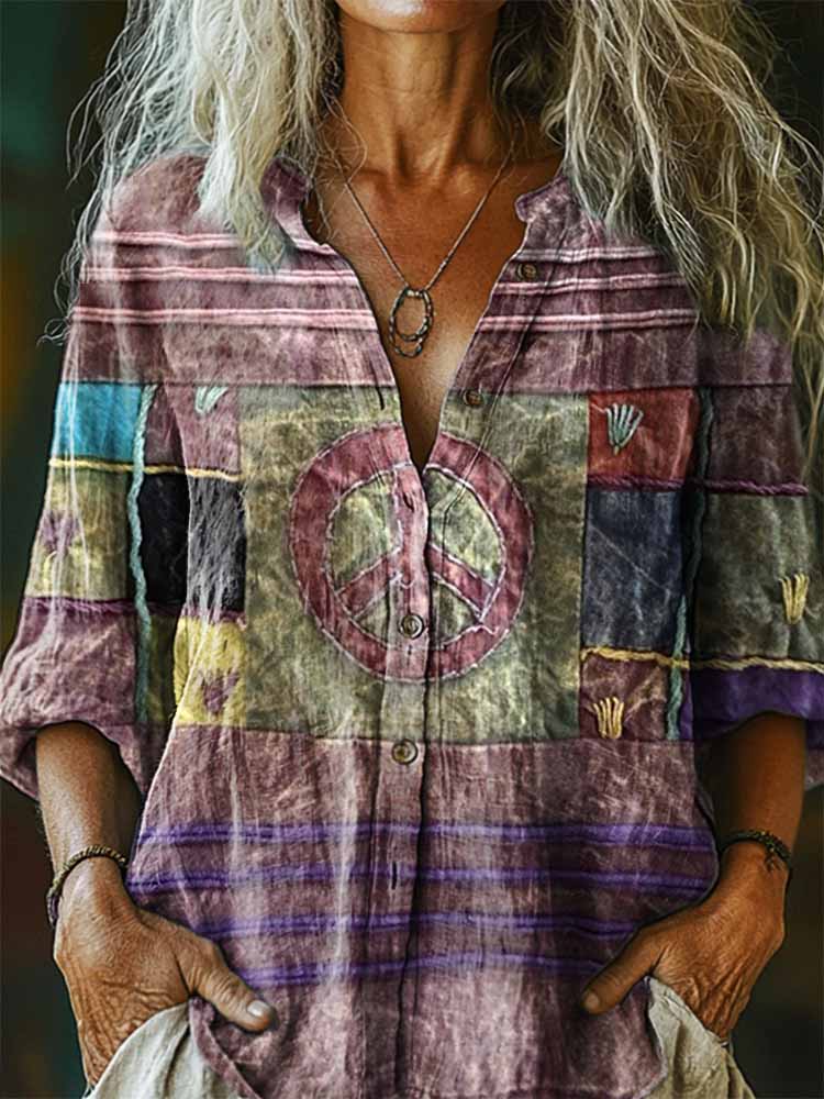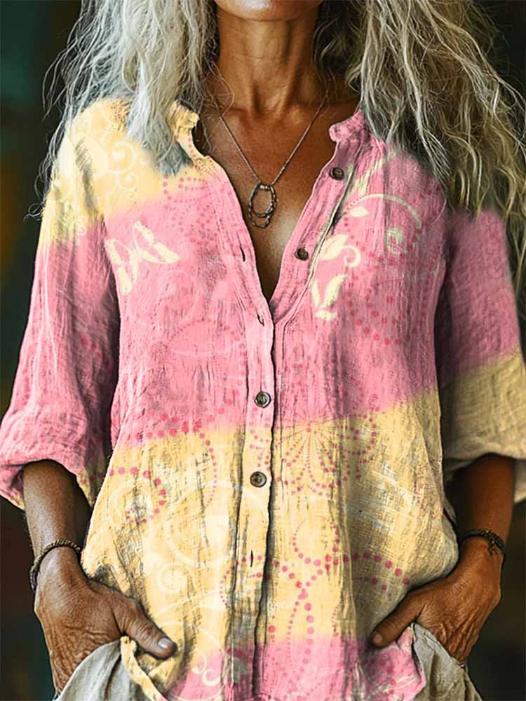 Women's Hippie Pattern Art Print Casual Cotton Linen Shirt