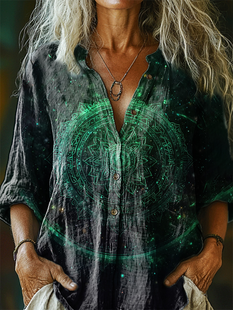 Women's Mandala Pattern Art Print Casual Cotton Linen Shirt