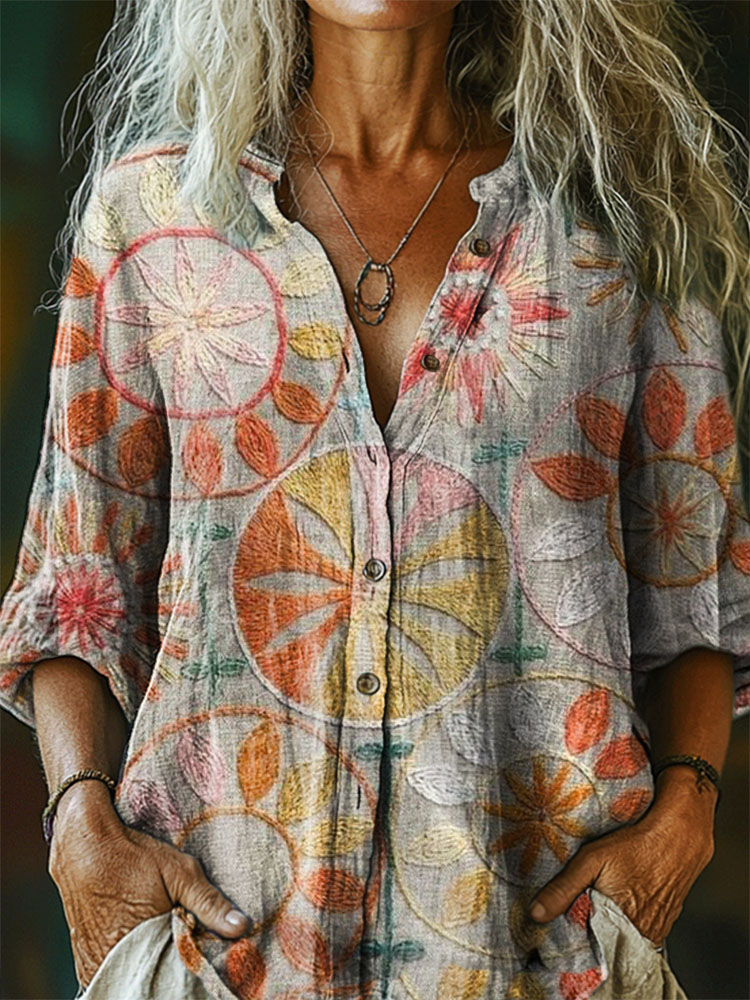 Women's Hippie Art Print Casual Cotton Linen Shirt