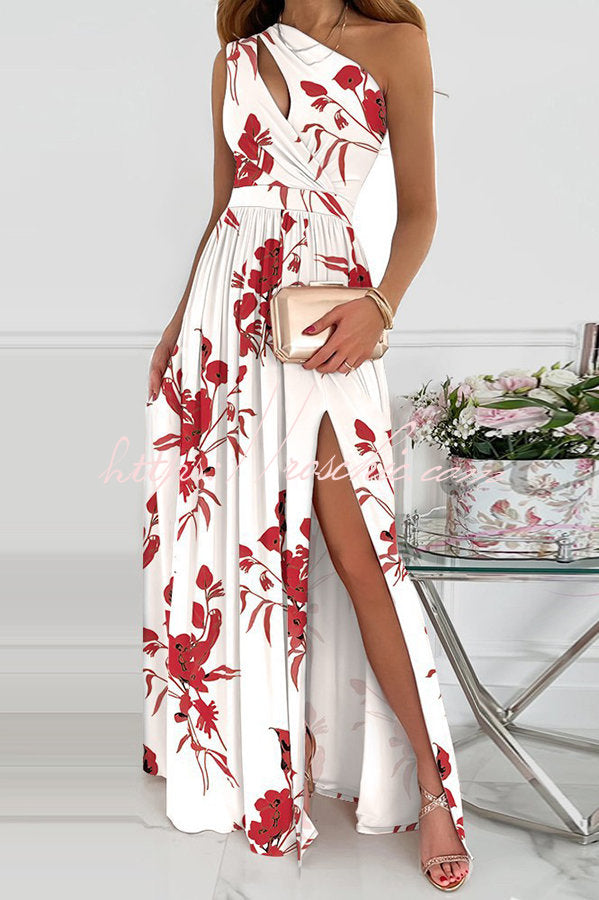 Jolie Floral One Shoulder Cutout Slit Maxi Dress