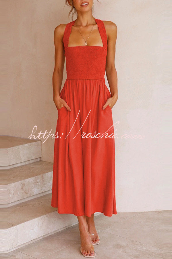 Bendita Pocketed Smocked Cross Back Midi Dress