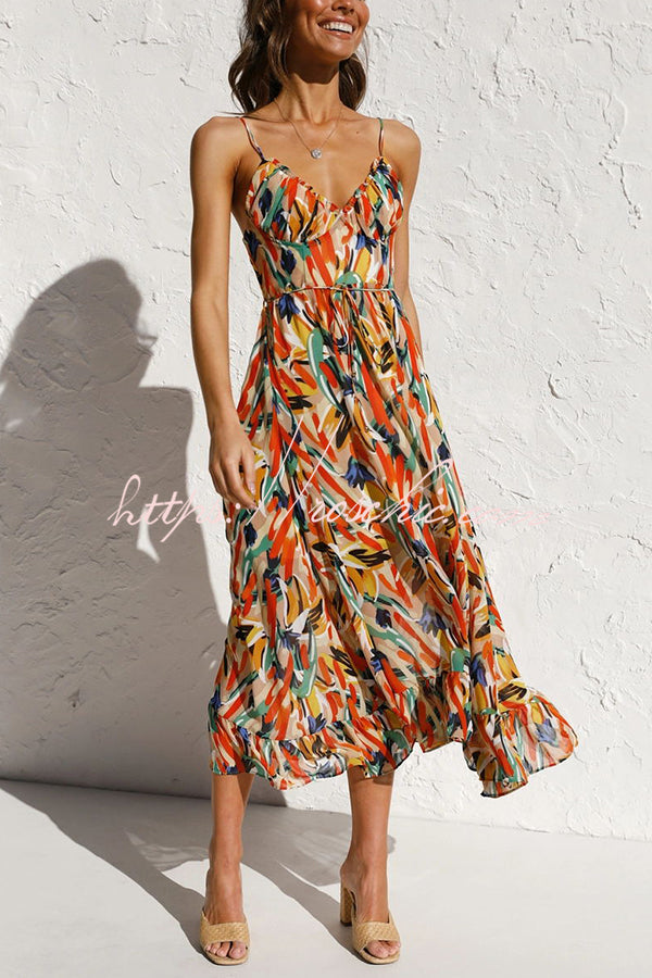 Stunning Floral Print Suspender Patchwork Maxi Dress