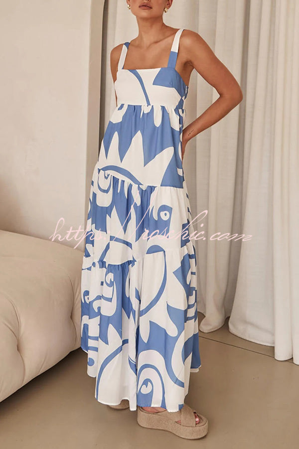Ocean Breeze Gradient Color Print Cutout Waist Tiered Maxi Dress