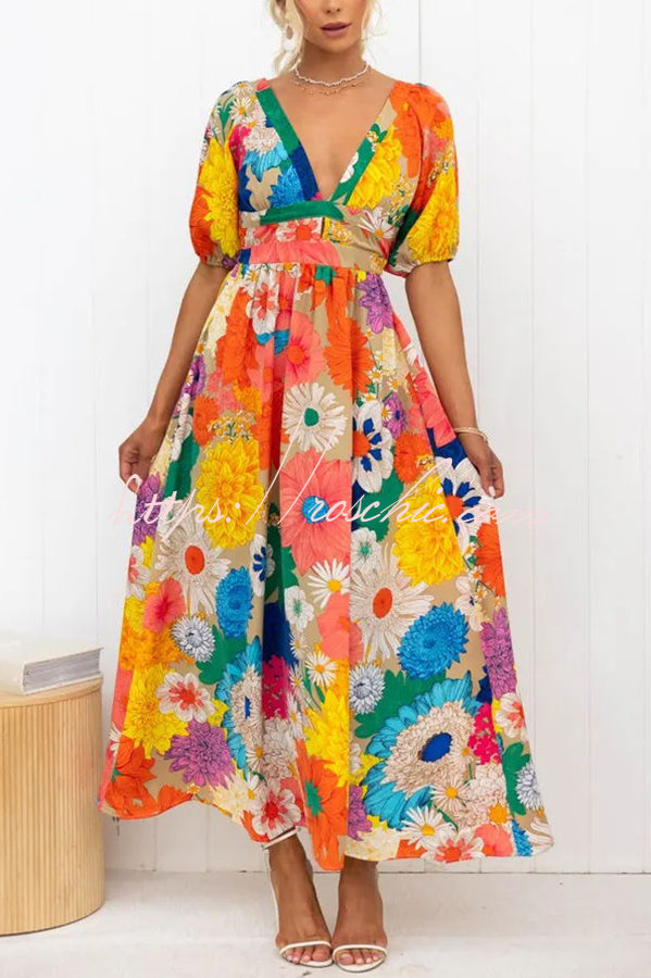 Floral Frenzy Printed Puff Sleeve Back Smocked Maxi Dress