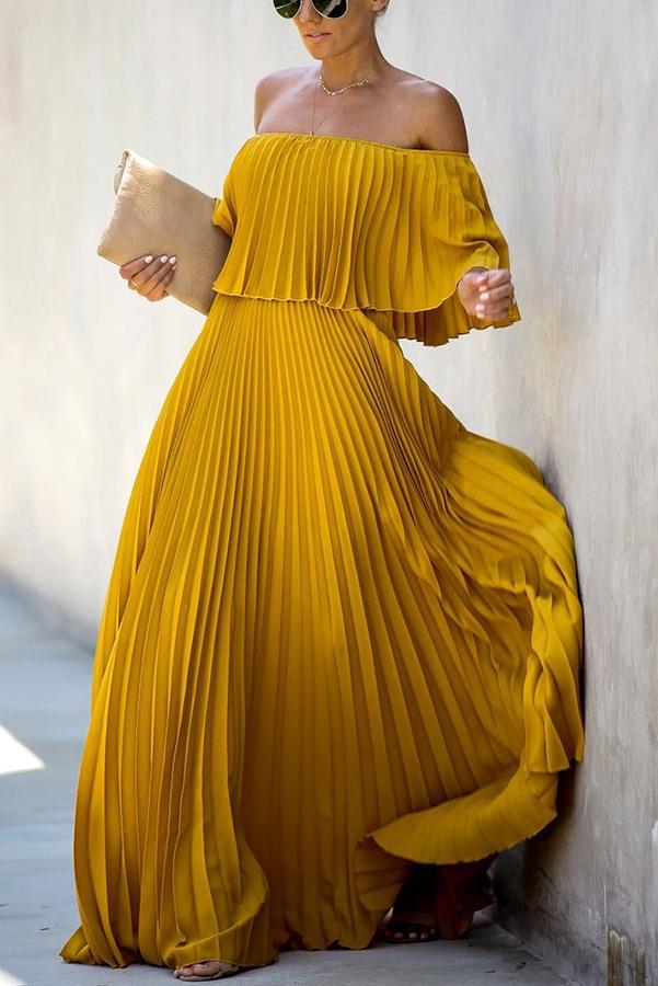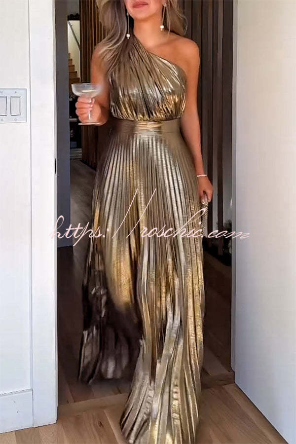 Be My Guest Metallic Fabric Pleated One Shoulder Maxi Dress