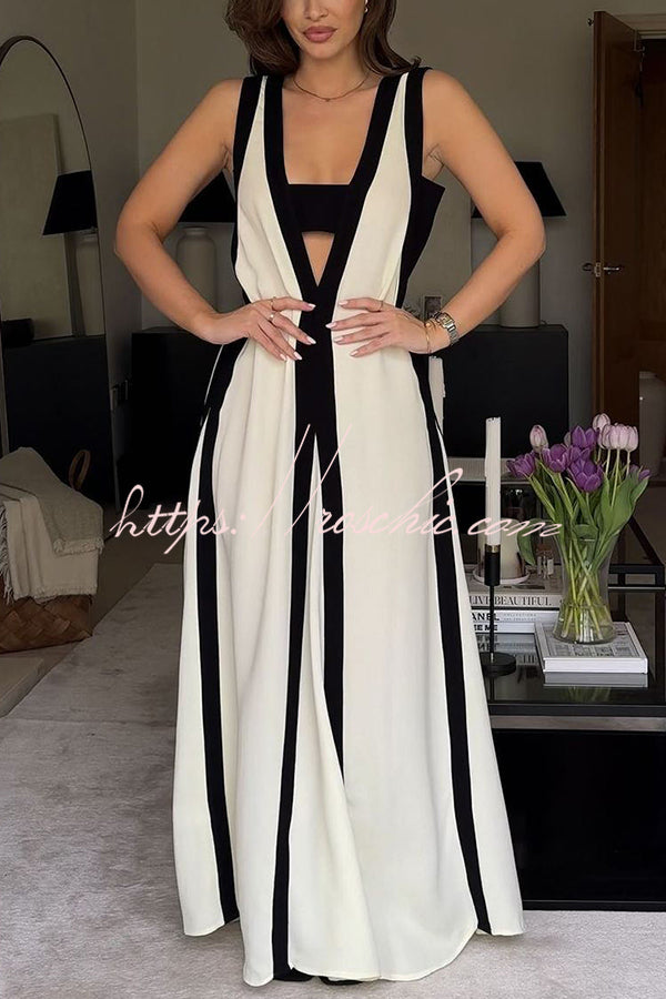 Elegant Piano Keys Reversible Style Colorblock A-line Maxi Dress