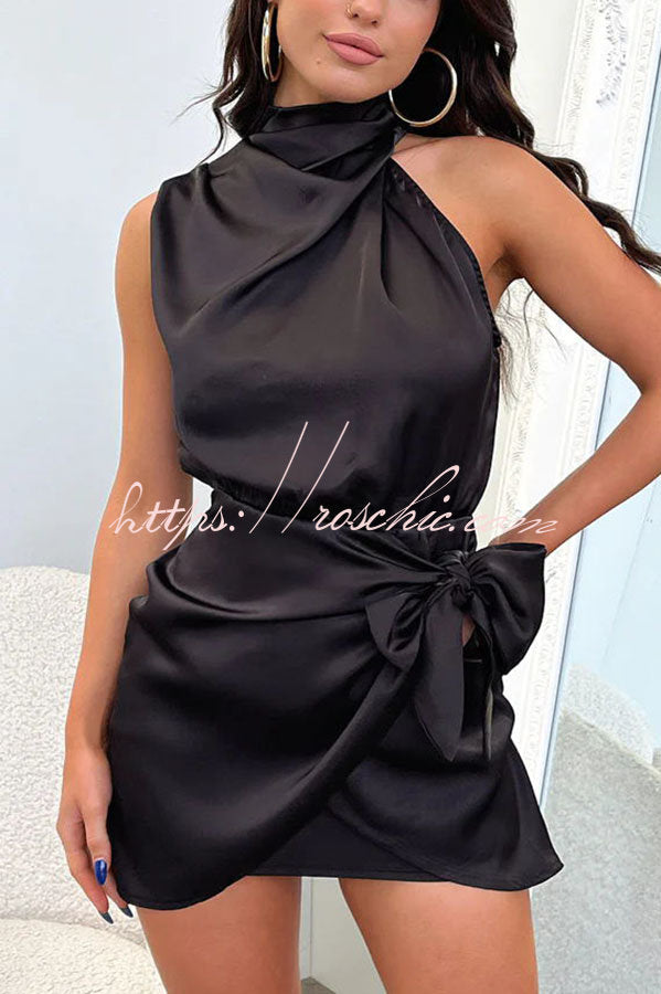 Hollywood Dreams Satin High Neck Wrap Mini Dress