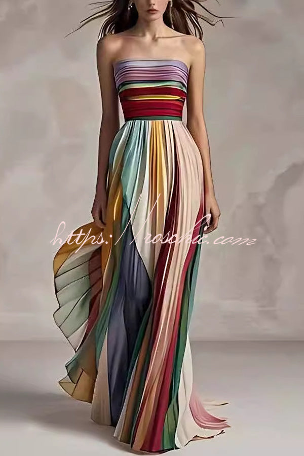 Unique Printed Strapless Sleeveless Resort Style Midi Dress