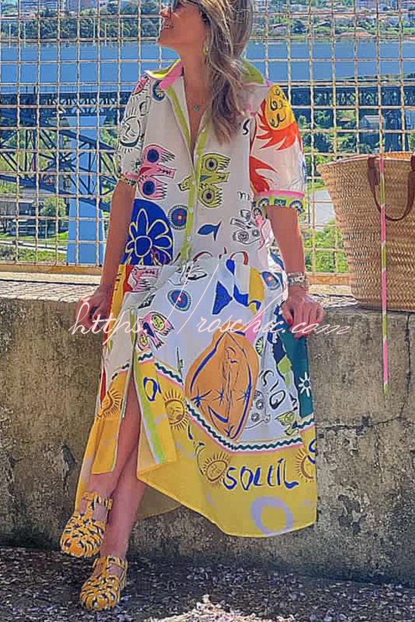 Chasing The Sun Unique Print Pocketed Shirt Midi Dress