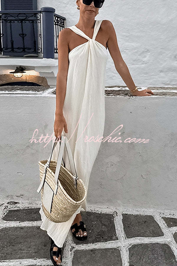 Sea angel Linen Blend Textured Fabric Halter Vacation Maxi Dress