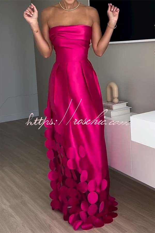 Timeless Elegance Satin Patchwork Strapless Flare Gown Maxi Dress