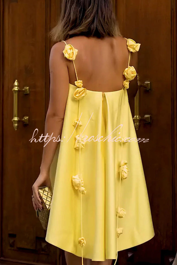 Playful and Flattering Silhouette 3D Rose Drape Straps A-line Mini Dress