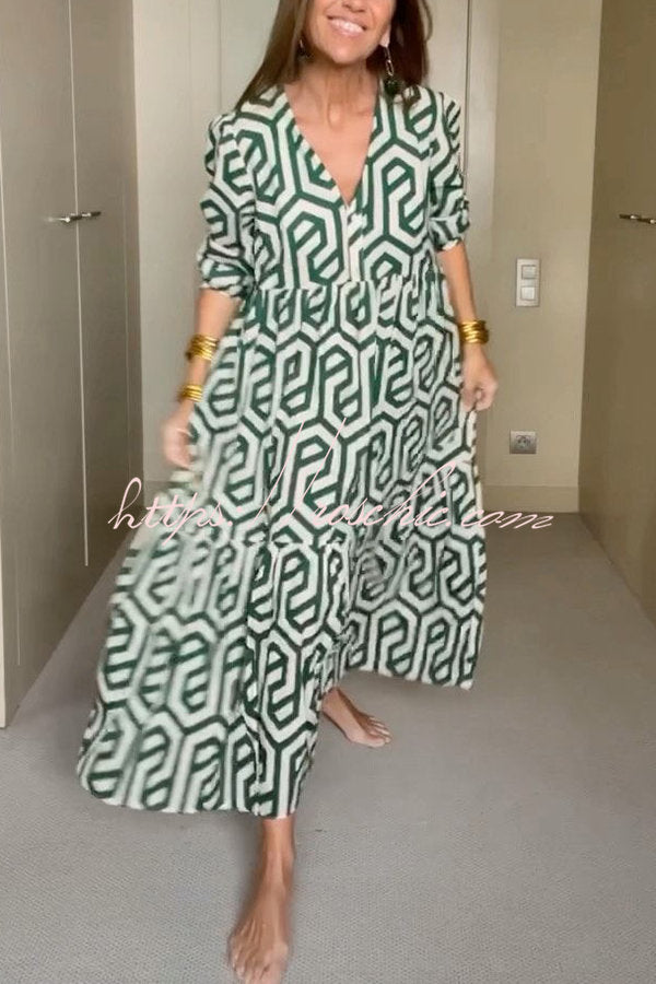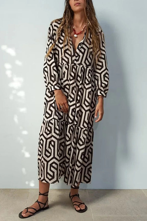 Marley Geometric Figure Print Loose Shirt Midi Dress