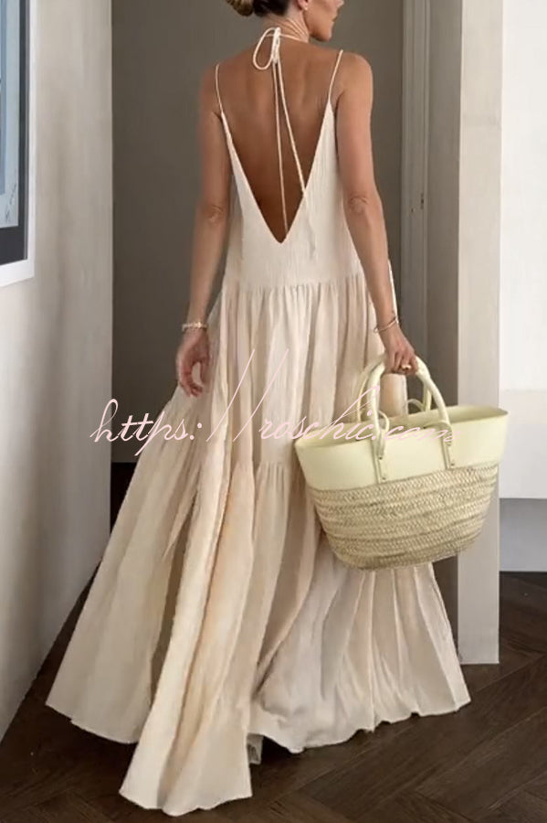Beach Day Linen Blend Back Tie-up A-line Layered Maxi Dress