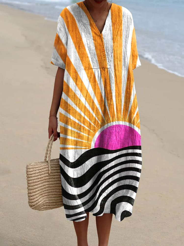 Women's Vintage Abstract Geometric Line Pattern Art Print Flowy Dress