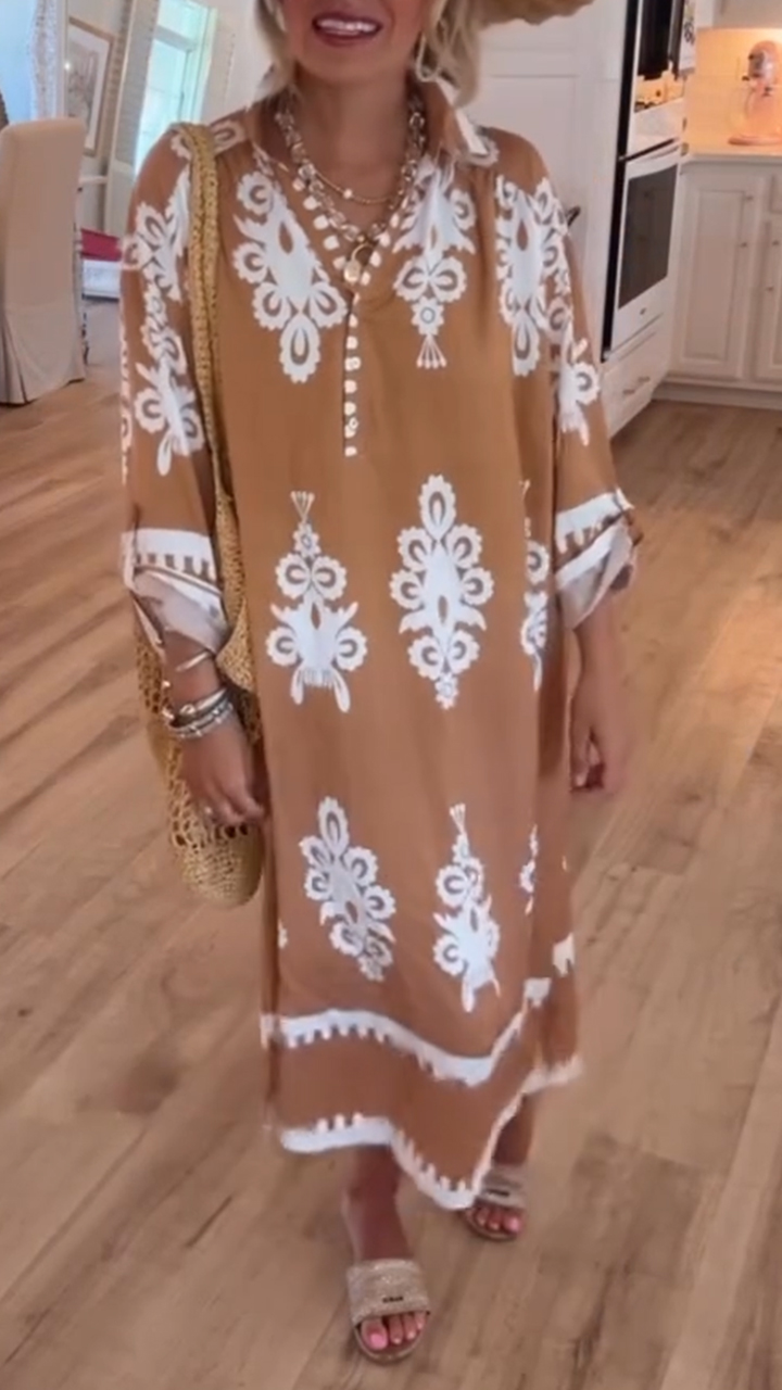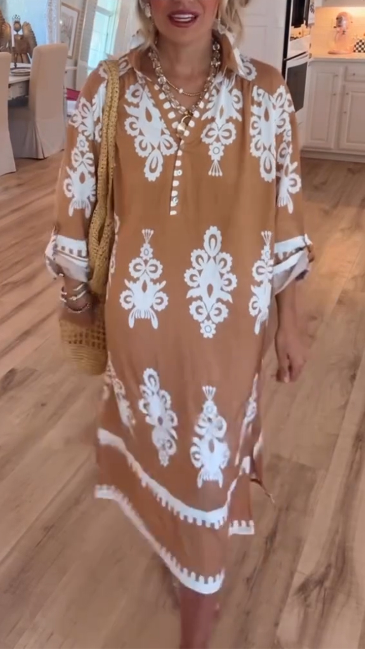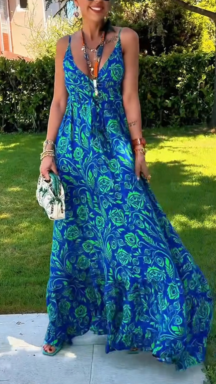 Ladies' V-neck Colorful Printed Loose Casual Dress