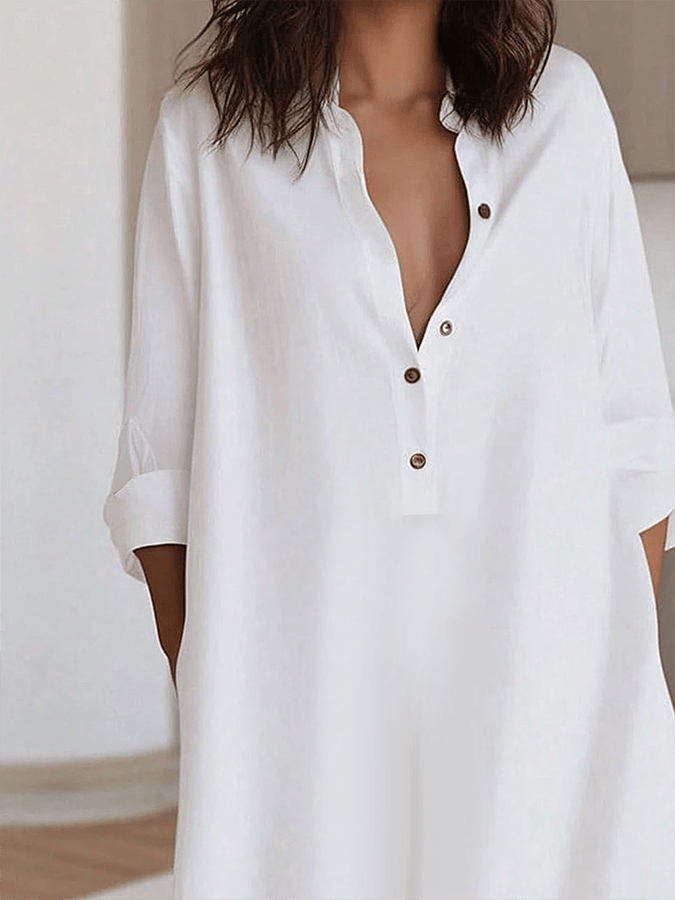Casual Linen Stand Collar Three-quarter Sleeve Loose Shirt