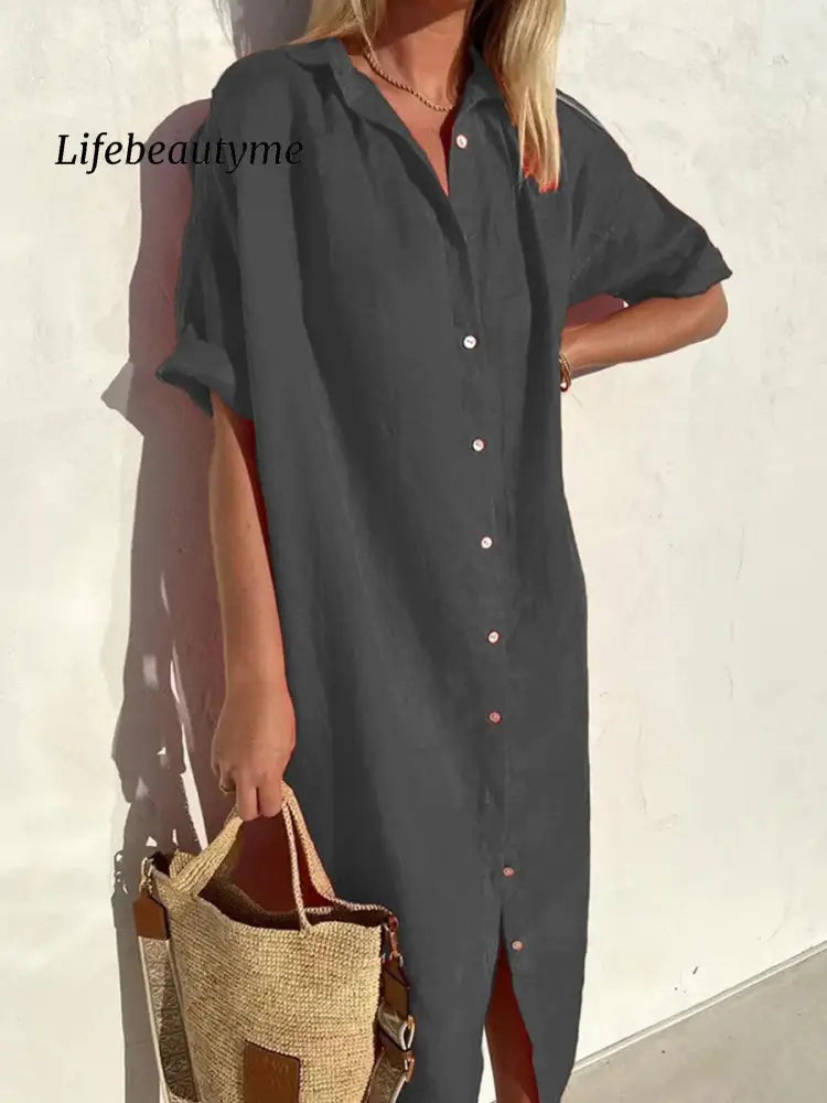 Women's Casual Short Sleeve Button Down Long Shirt Dress