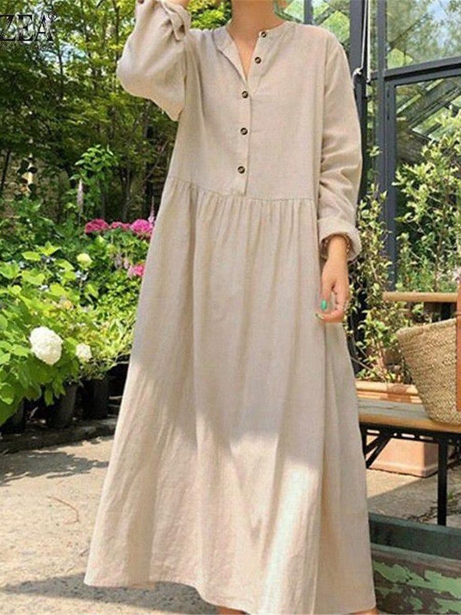 Women's Casual Elegant 3/4 Sleeve Cotton And Linen Dress