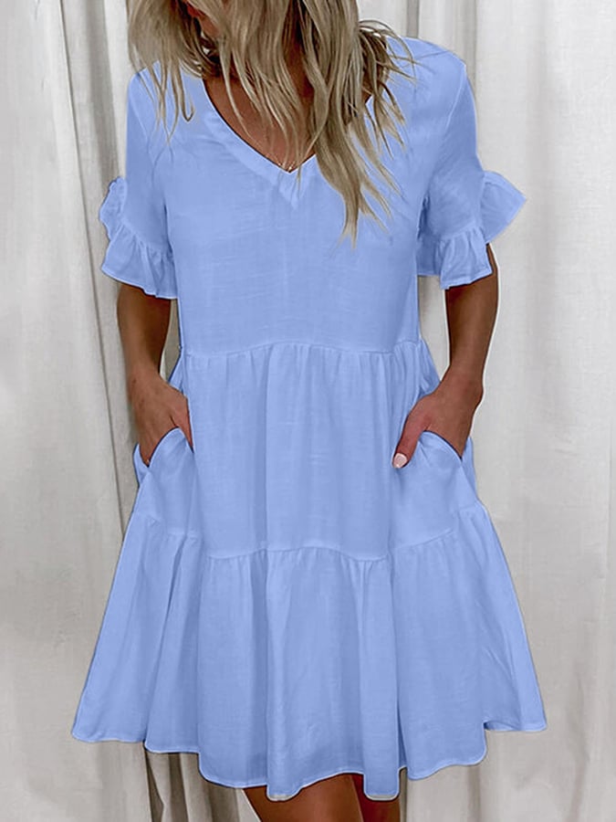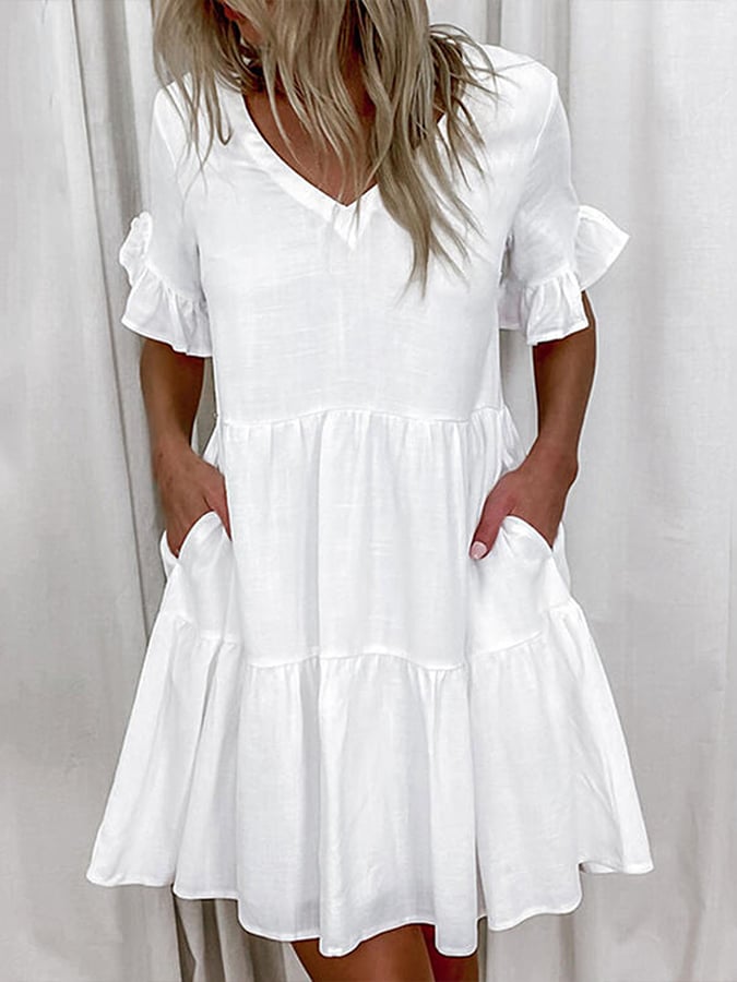 Women's Casual Elegant Ruffled Stitching Cotton Dress