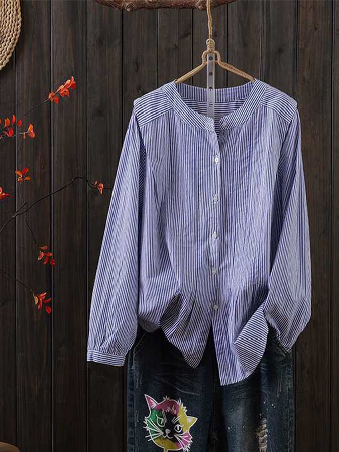 Loose Vintage Striped Jacket with Lapels and Buttons