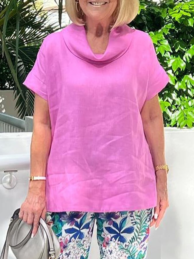 Women's Cotton Linen Seaside Print Casual Loose Top