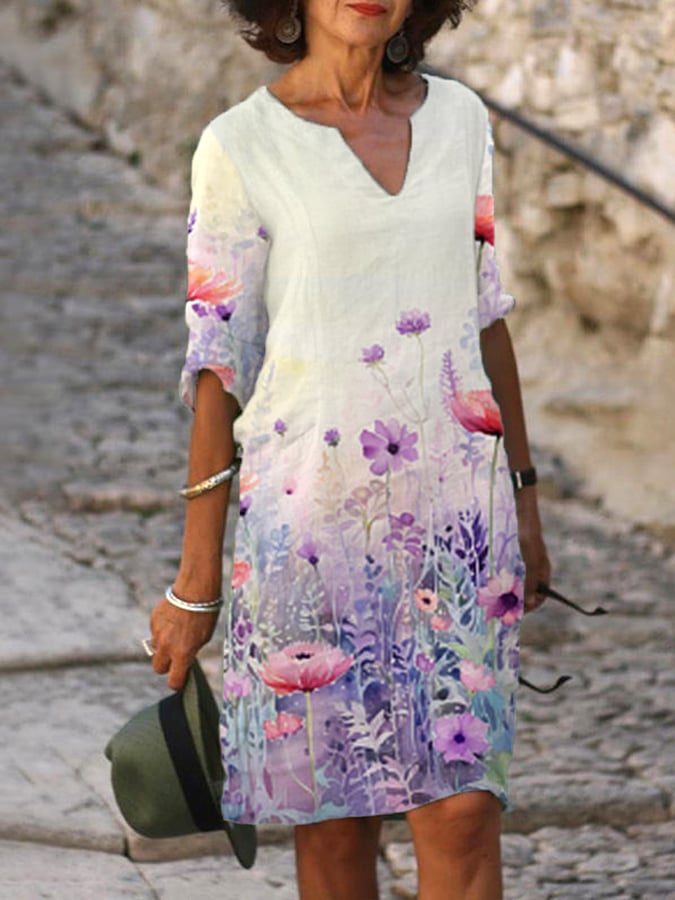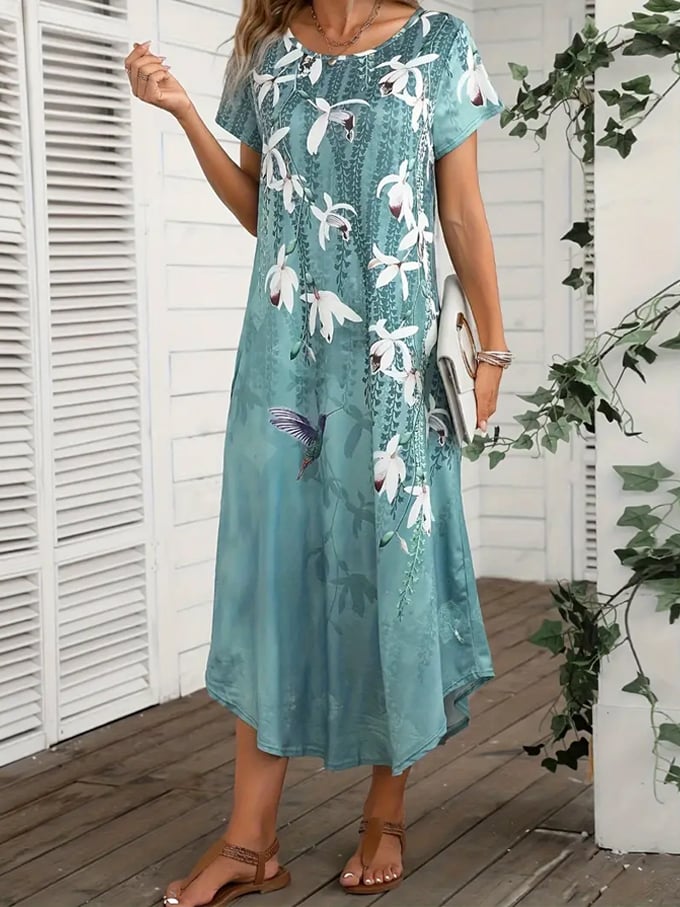 Women's Retro Botanical Floral Design Printed Casual Loose Dress(S-5XL)