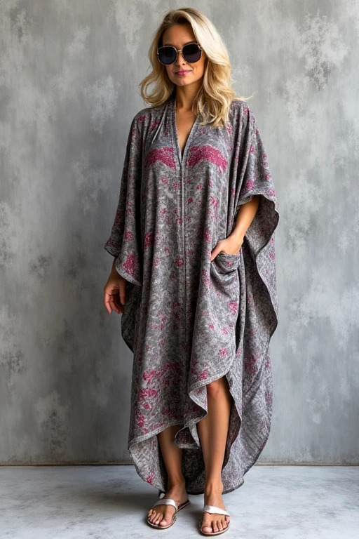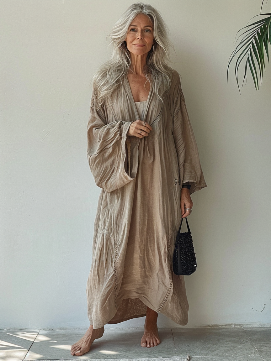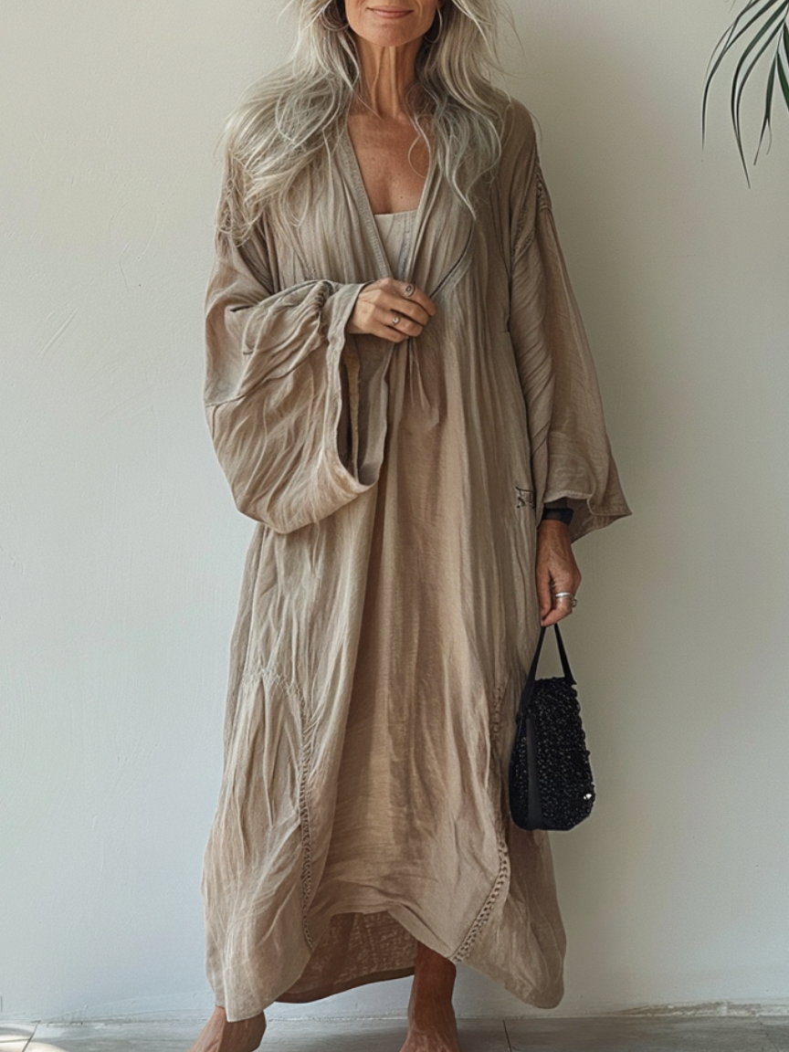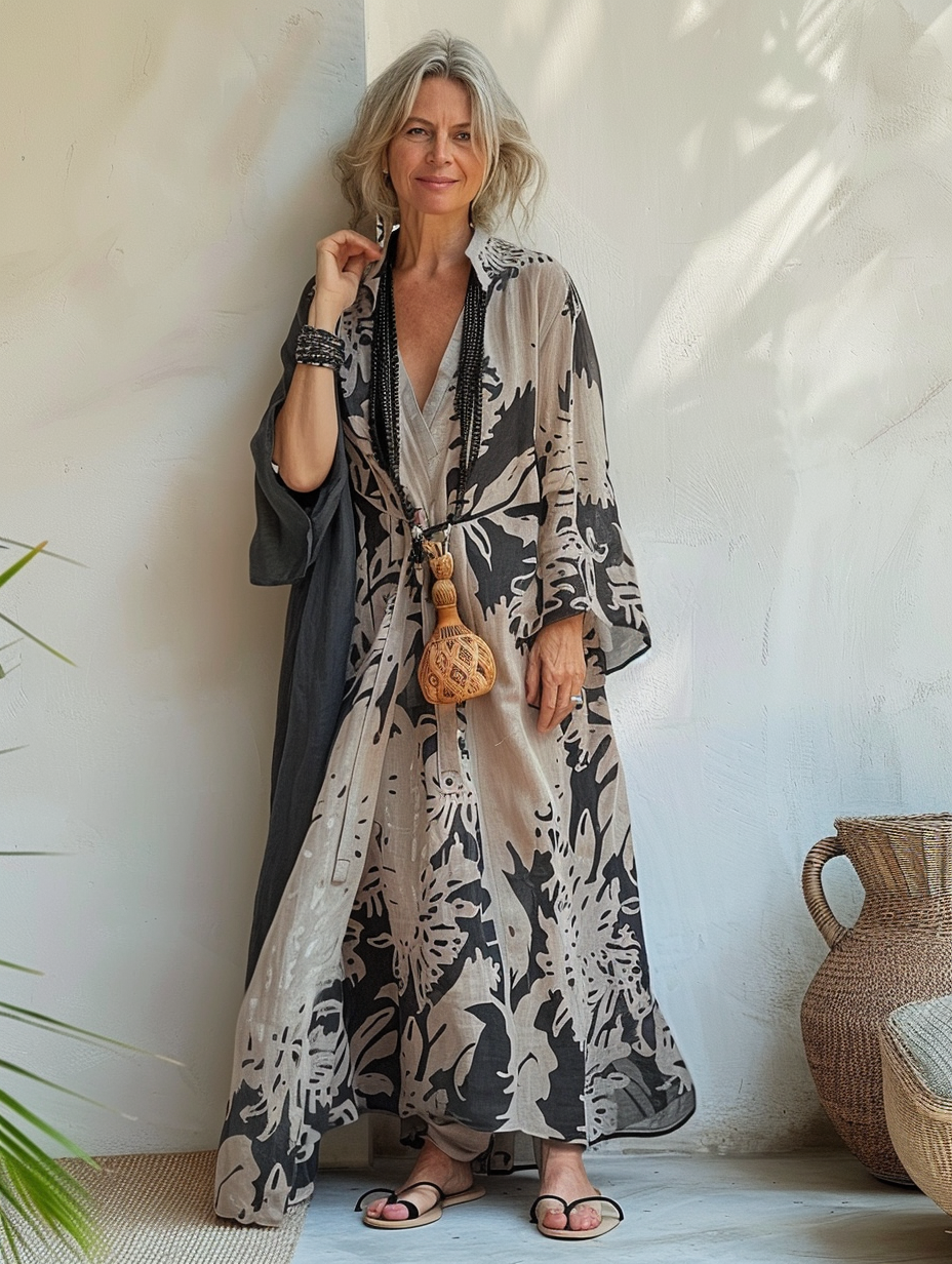 Linen Boho Stylish Printed Kaftan Maxi Dress Cardigan
