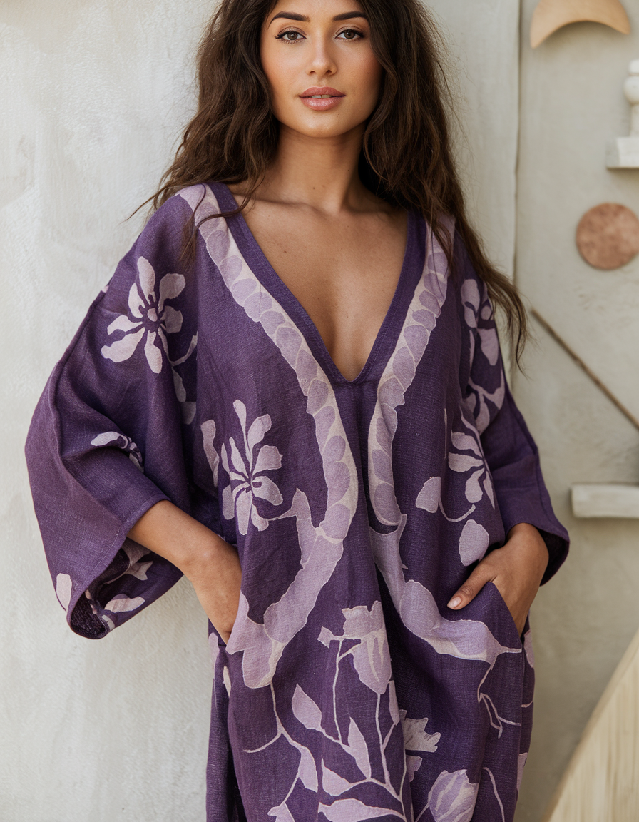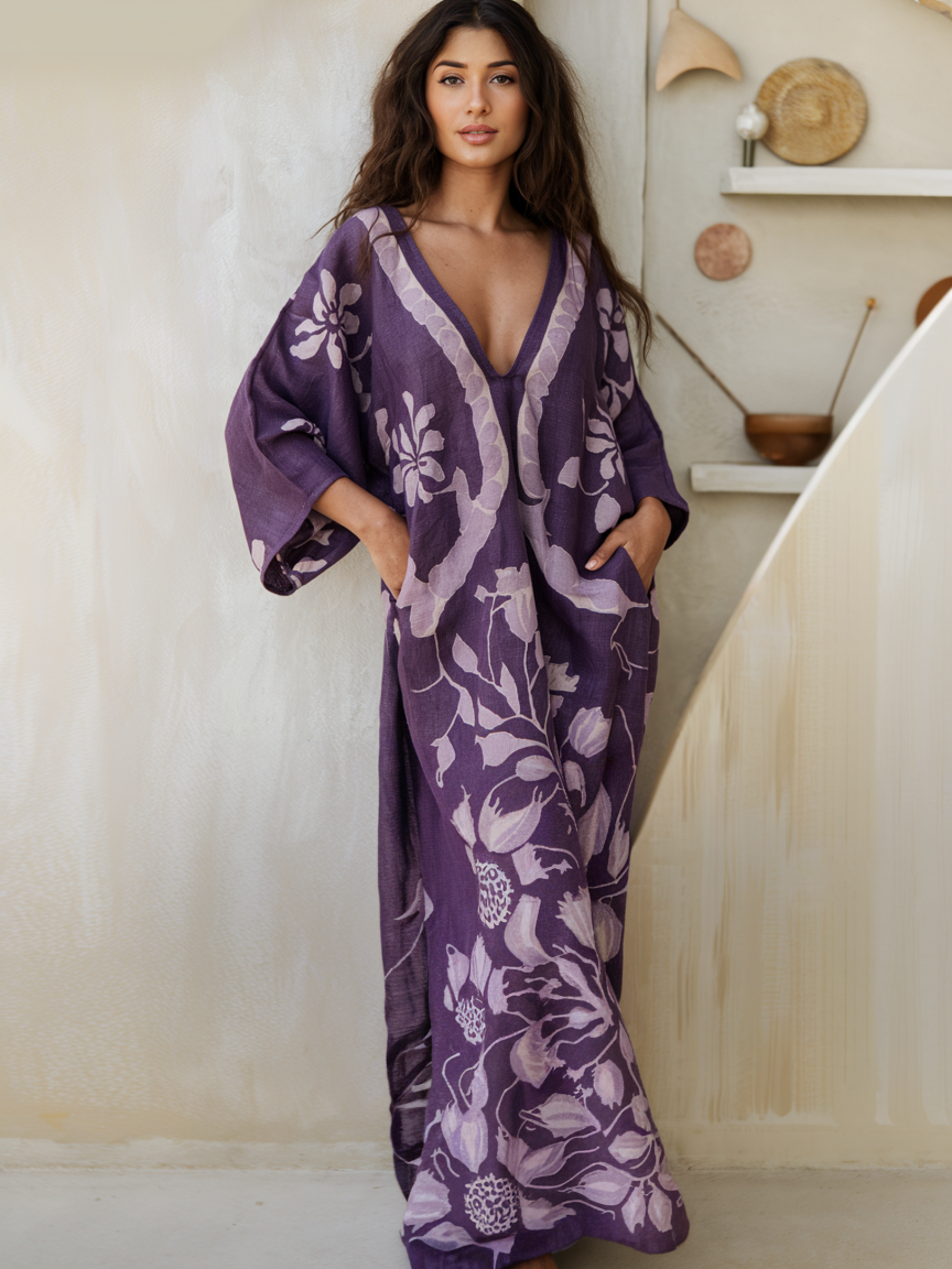 Linen Boho Stylish Printed Kaftan Maxi Dress