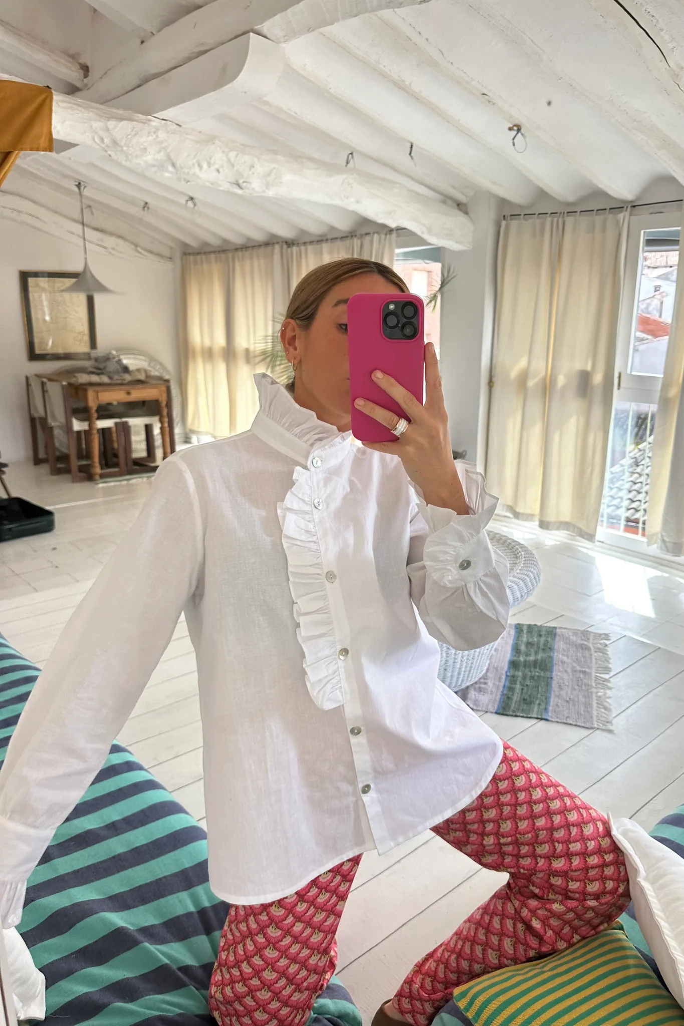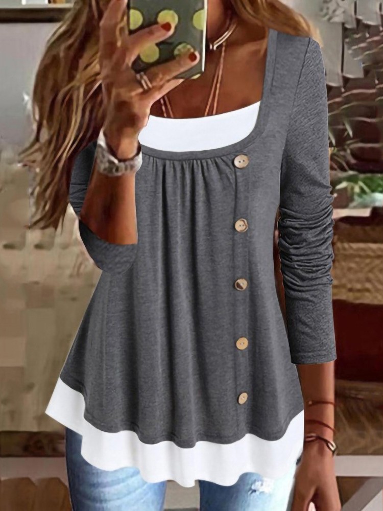 Ladies Pile Collar Pullover Pleated Long Sleeve Loose Casual Shirt