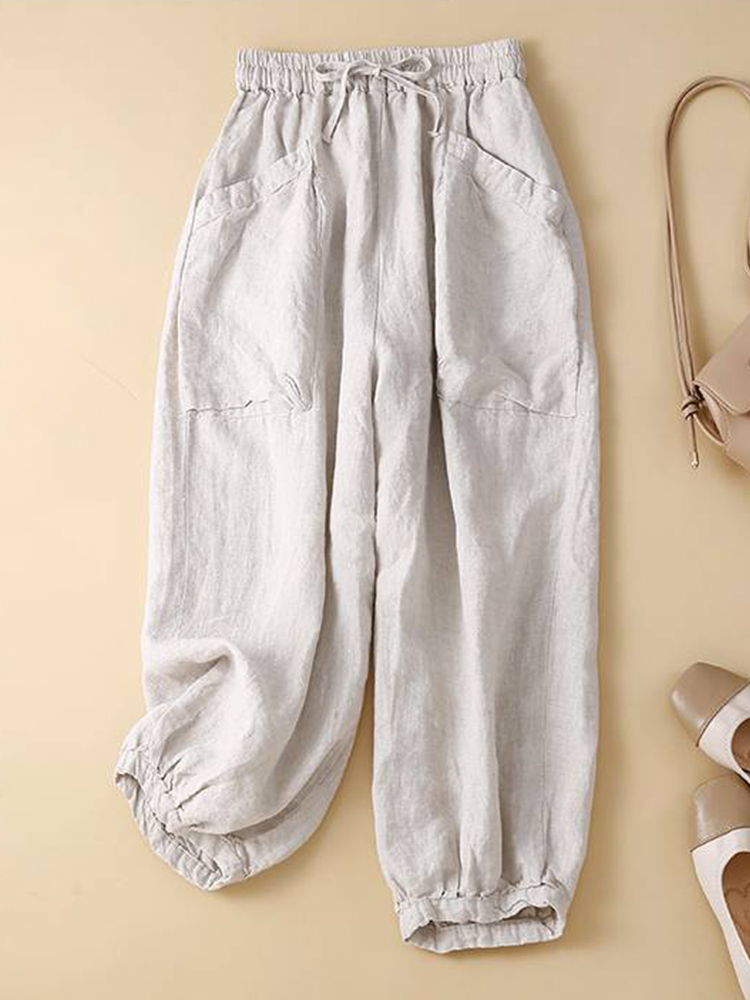 Women's Linen Blend Elastic Waist Casual Pants