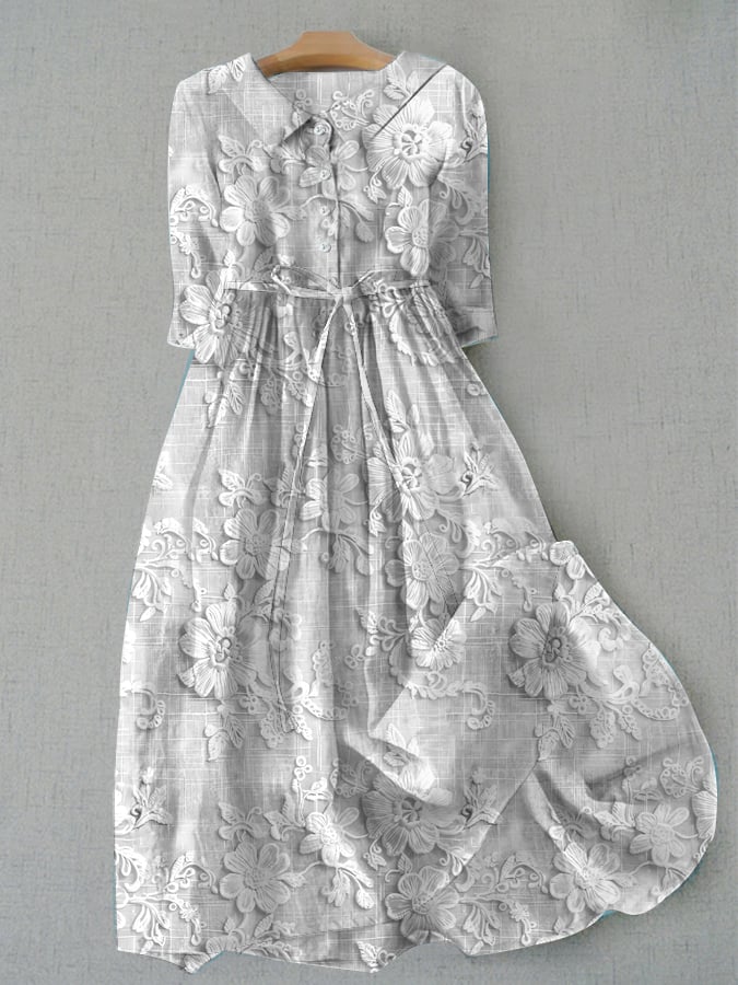 Women's Casual Floral Embroidery Print Lace-Up Dress