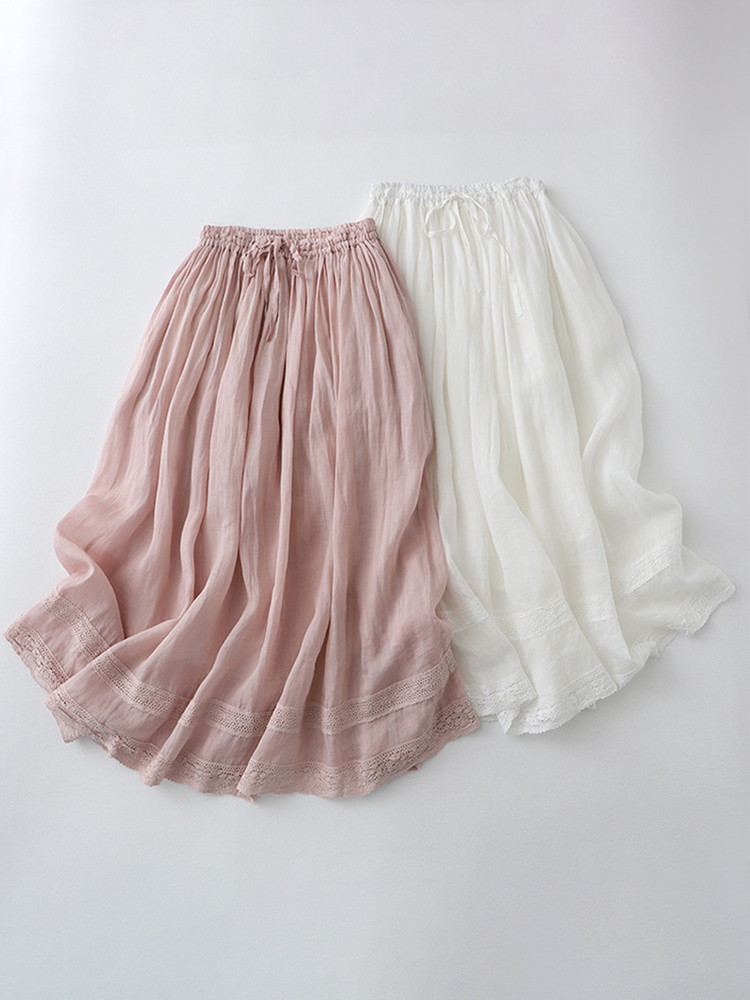 Drawstring Lace Solid Color Casual Comfy Skirt